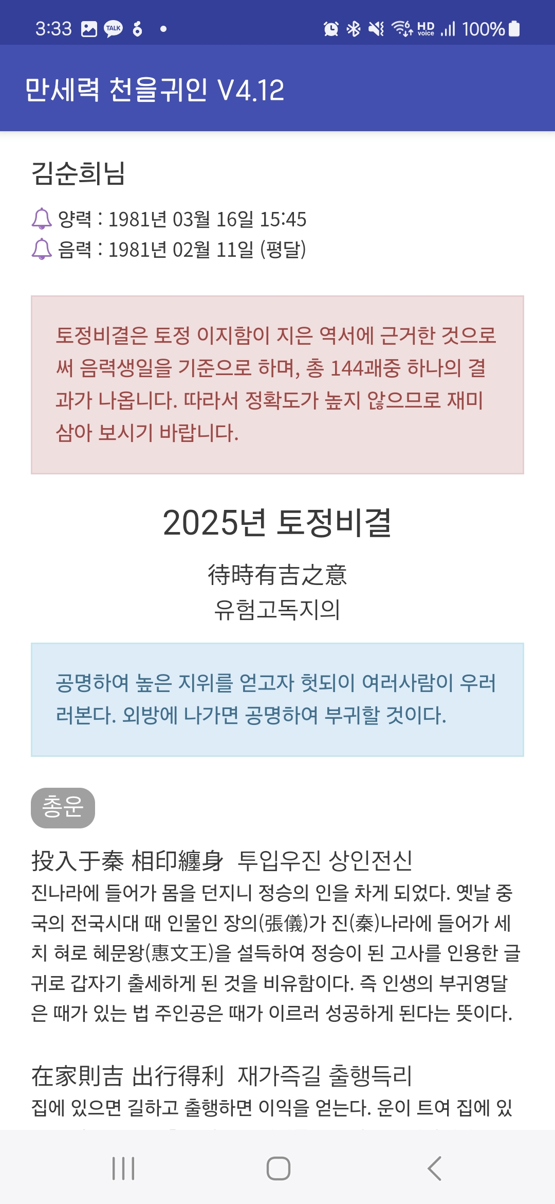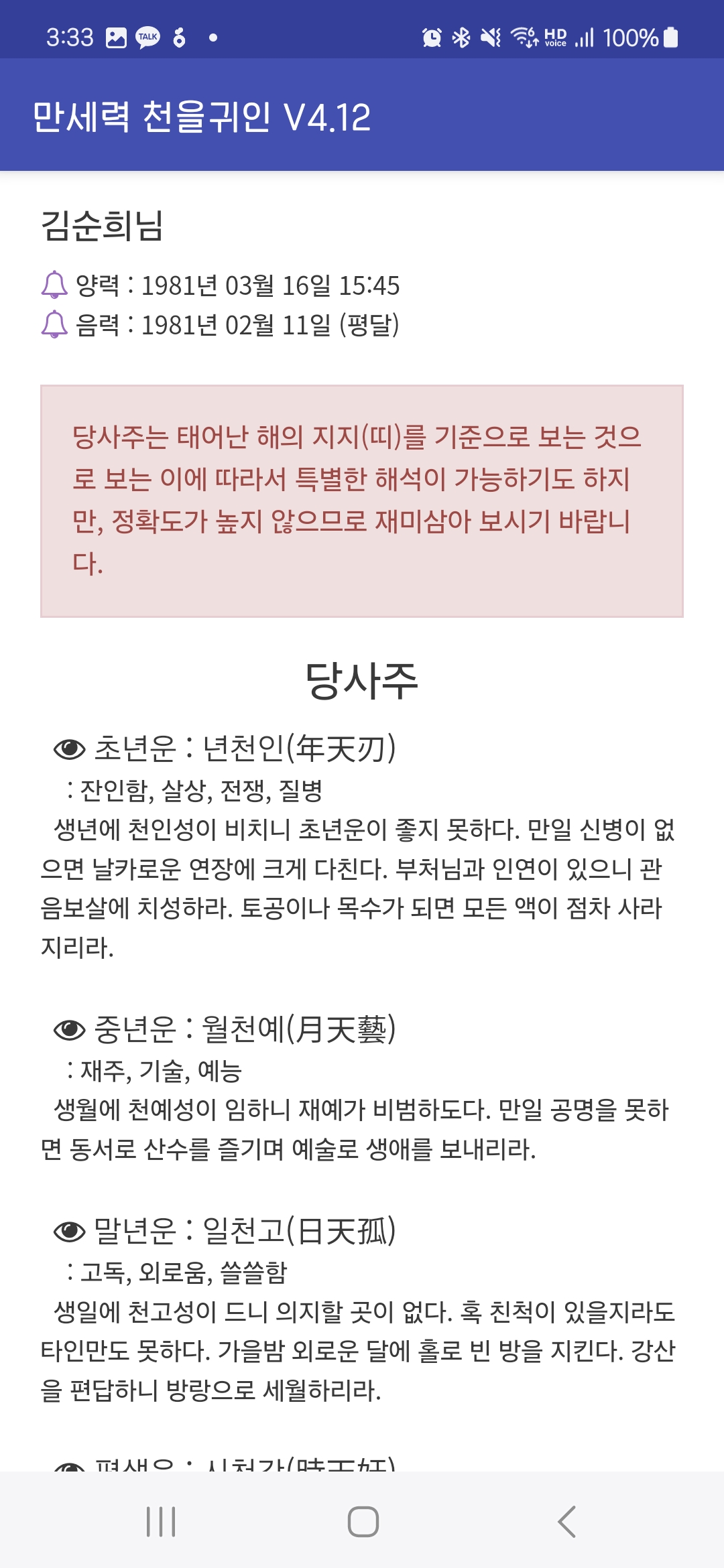 ‘만세력 천을귀인’ 앱을 사용해보는 걸 추천해요.